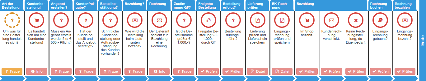 Dieser Workflow unterstützt Sie bei der Abarbeitung von Bestellabläufen. Angebote aus dem ERP-System, Faxe, Mails von den Kunden oder Lieferanten sowie mündliche Informationen werden hier zusammengefasst bis die Ausgangsrechnung geschrieben wurde und die Buchhaltung die Lieferantenrechnung bezahlt hat. Alle gesammelten Informationen stehen dann weiterhin für spätere Garantieabwicklungen zur Verfügung.